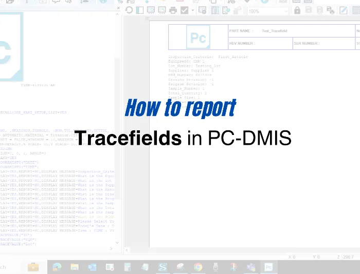 PC-DMIS is a software package that is used to control coordinate measuring machines (CMMs). Tracefields are an important feature of PC-DMIS that allow you to send additional information into your statistical database along with your measurement results.